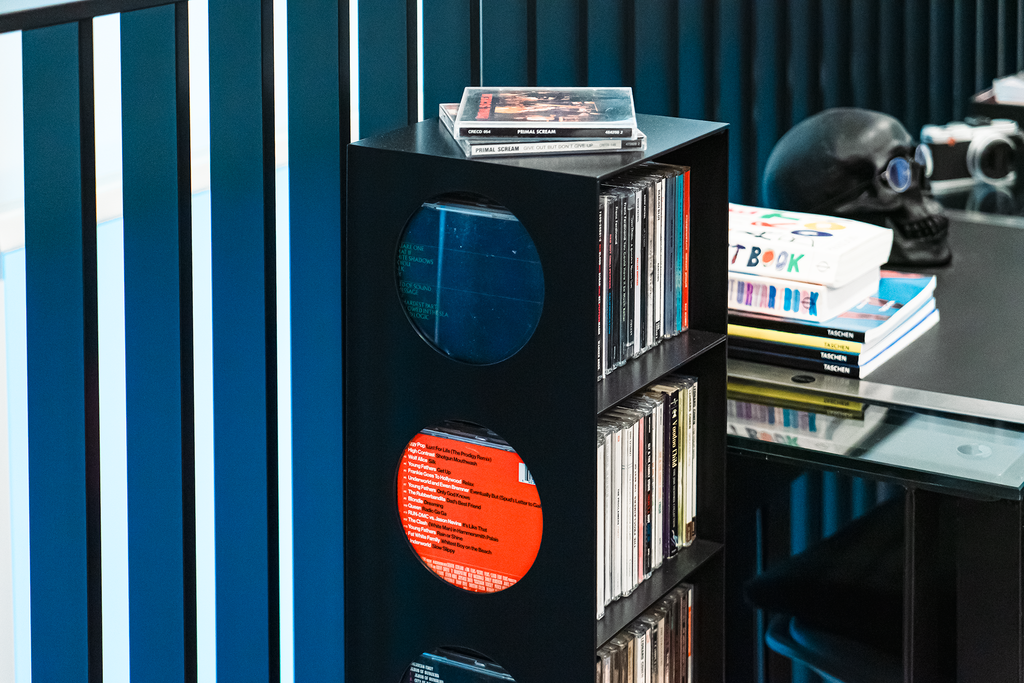 Diseñado y fabricado en Europa, este porta CD está disponible en acabado negro pintado o en cualquier color RAL de su elección. Su estructura minimalista y funcional mantiene su colección ordenada y añade un toque atrevido a su espacio. Un complemento perfecto para los amantes de la música, esta pieza es práctica y elegante, integrándose a la perfección en interiores contemporáneos.